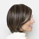 Highlighted blend of ash and platinum blondes and chocolate roots.