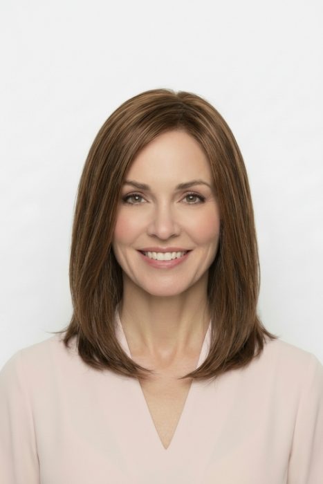 100% Remy human hair. Hair enhancing top piece with 5¾ x 5½” mono base.