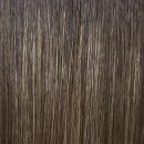 Highlighted blend of ash and platinum blondes and chocolate roots.