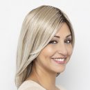 Highlighted blend of ash and platinum blondes and chocolate roots.